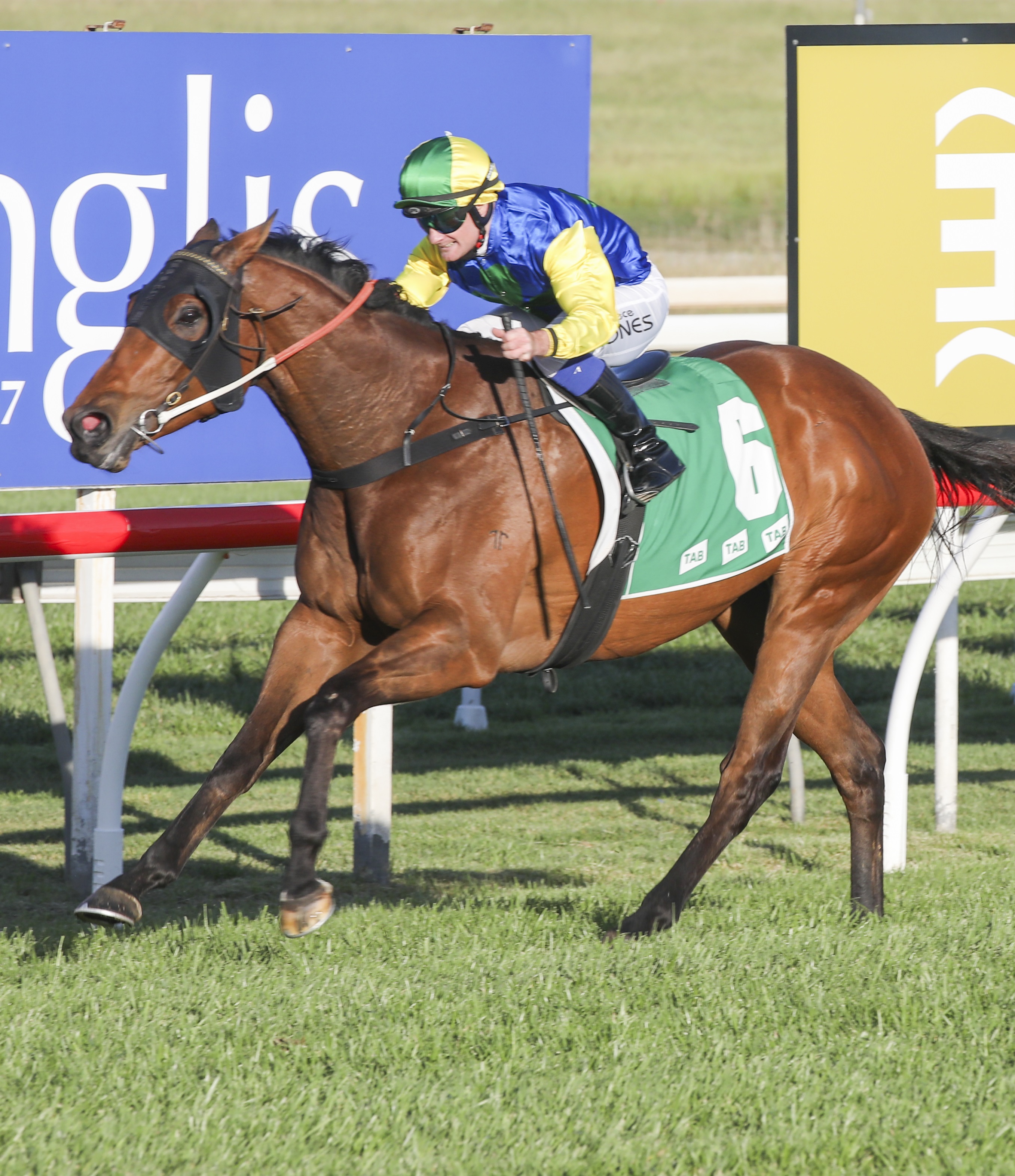 Jacenza (Reece Jones) is an all-the-way winner at Scone. Image by Bradley Photographers