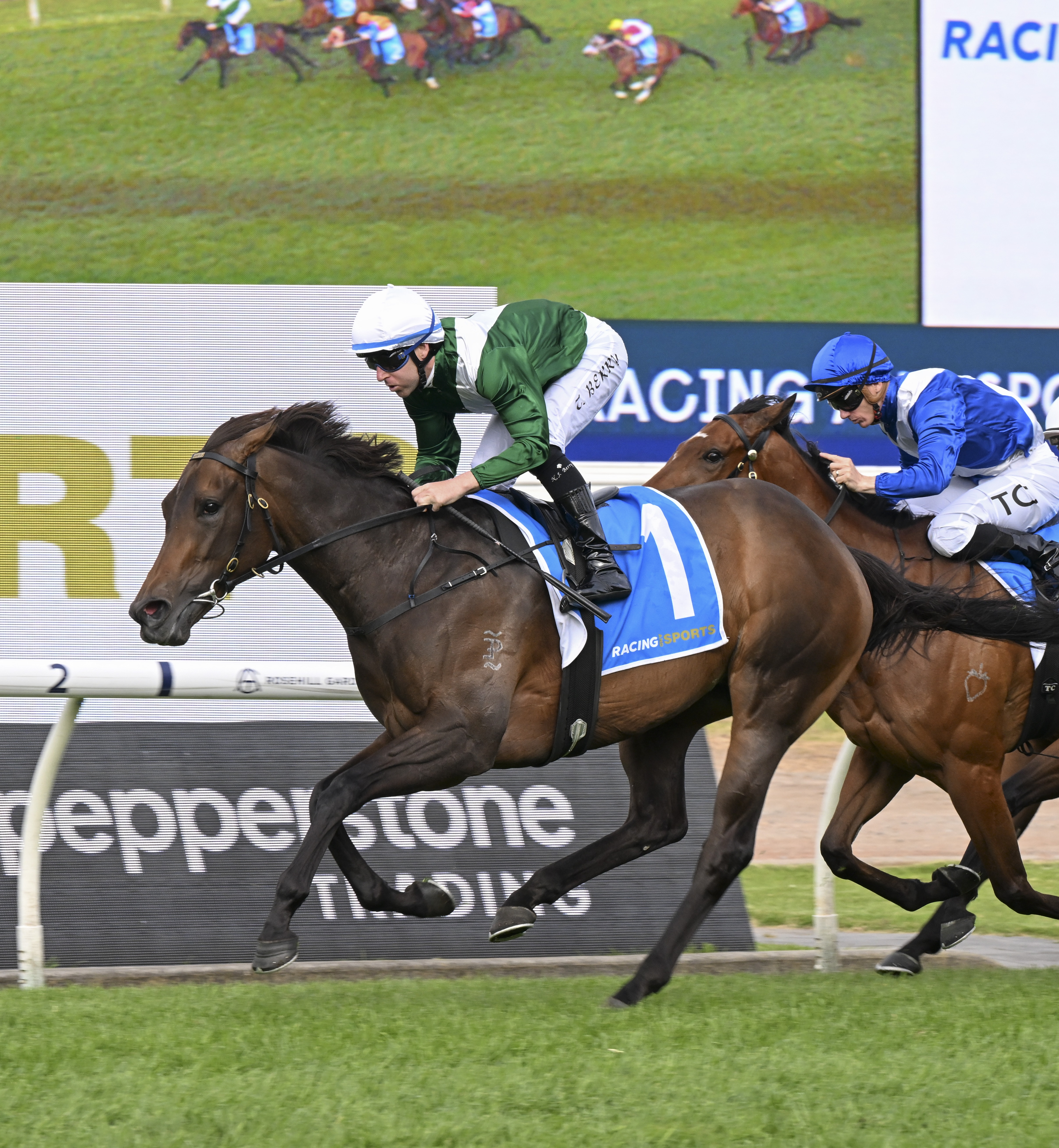 Manaal (Tommy Berry) takes out this year's Racing and Sports Golden Pendant at Rosehill Gardens. Image by Bradley Photographers