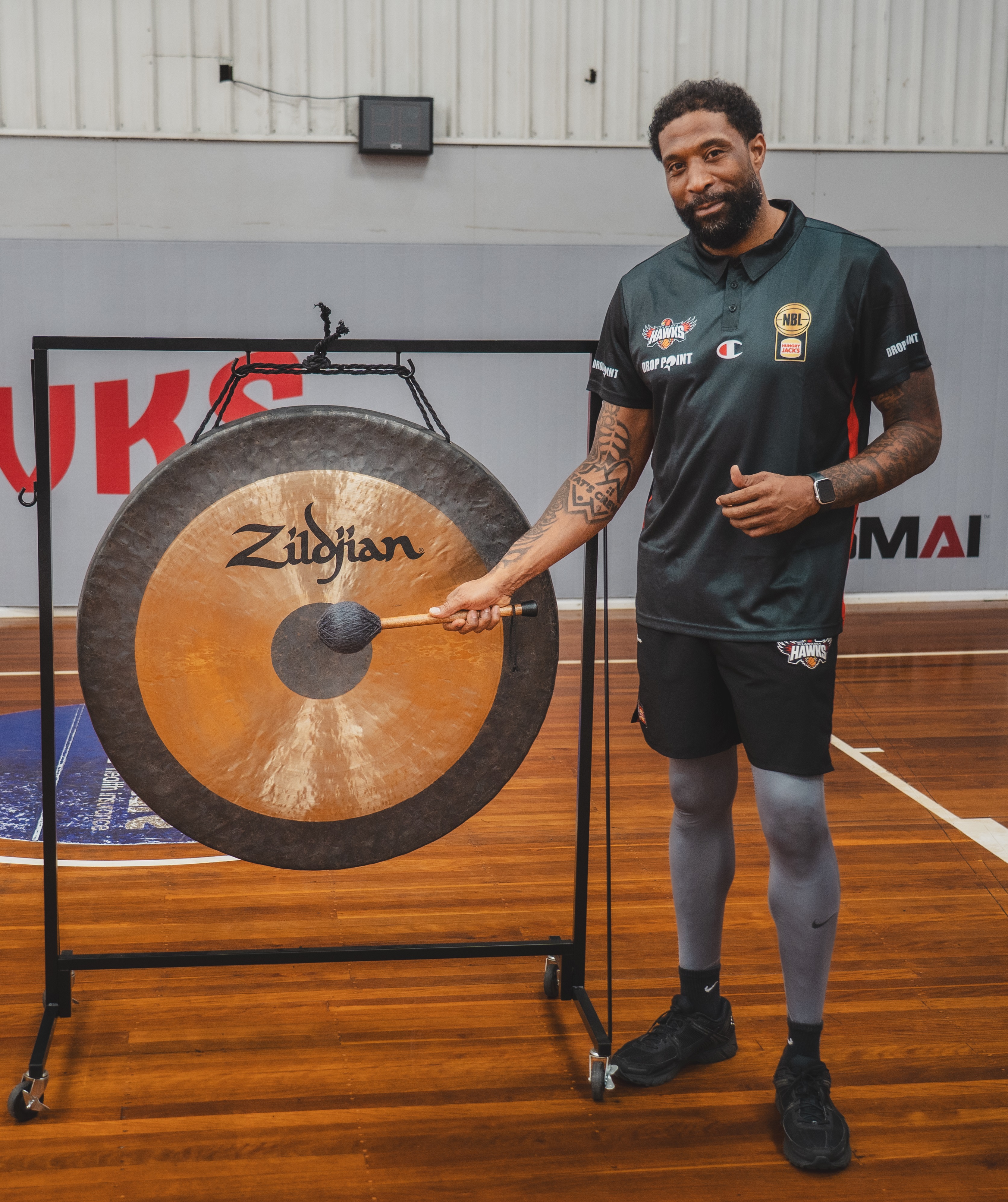 Illawarra Hawks' Head Coach, Justin Tatum, practices striking The Gong