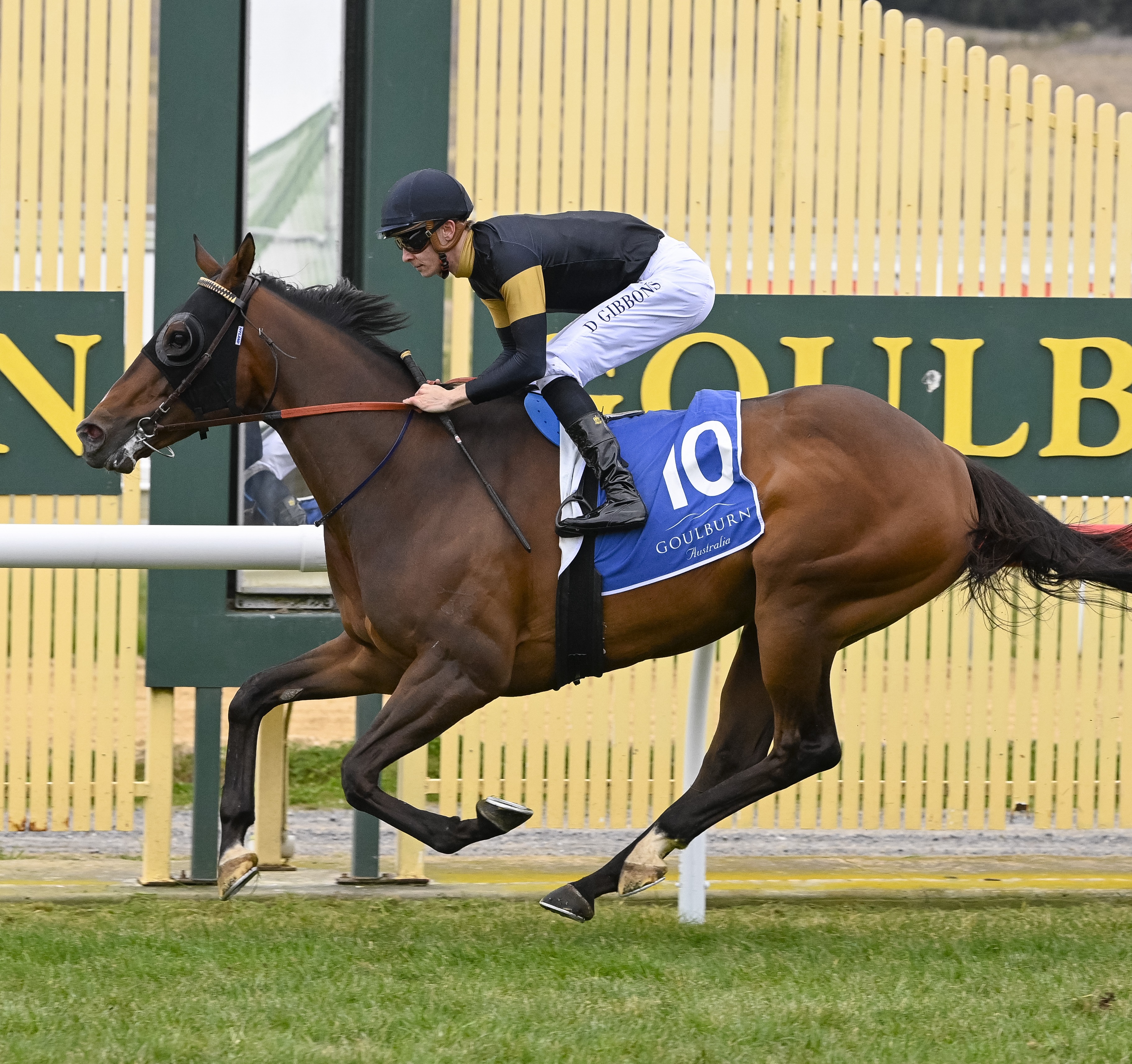 Ruby Flyer (Dylan Gibbons) wins the Goulburn Cup. Image by Bradley Photographers